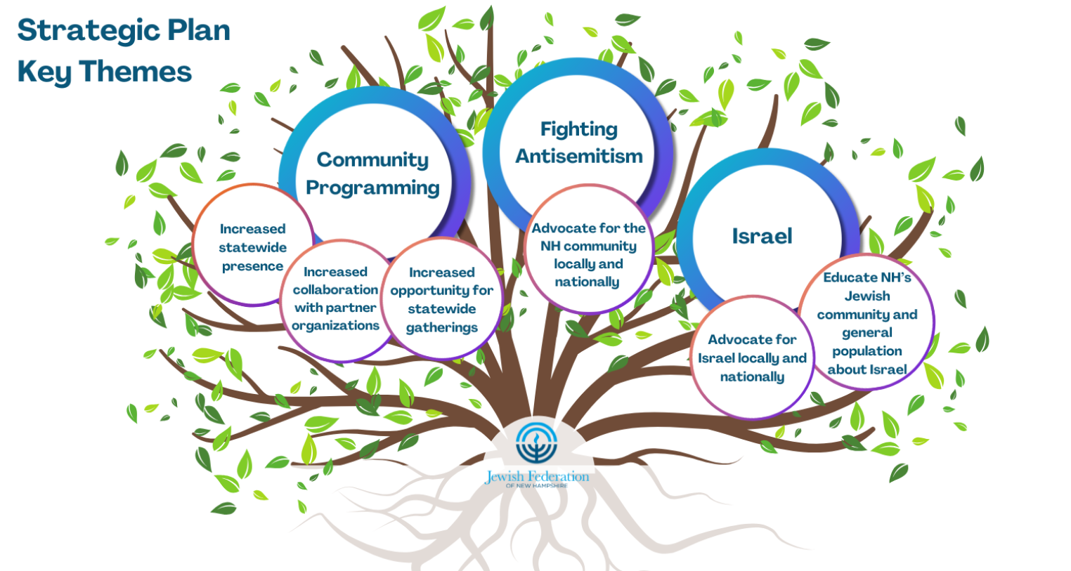 Through a network of partnering organizations, and guided by our Jewish values, JFNH brings together the New Hampshire Jewish community to leverage its resources to care for Jews in need here and abroad, assure the continuity of the Jewish people, support a caring relationship with the State of Israel, and mobilize on issues of concern to the local New Hampshire community.