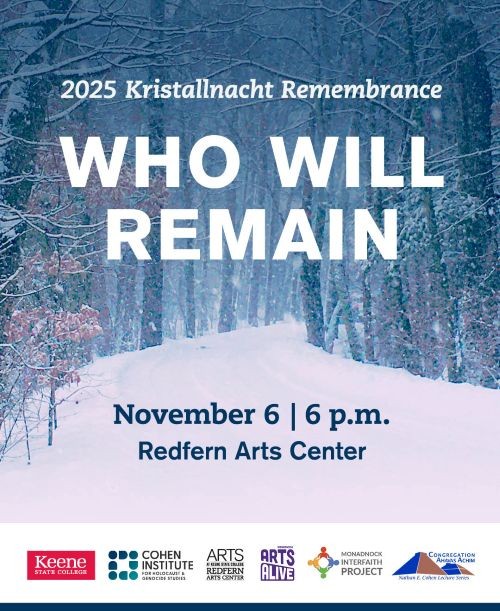 This event is hosted by the Cohen Institute for Holocaust and Genocide Studies in partnership with Congregation Ahavas Achim and the Monadnock Interfaith Project. “Who Will Remain” is a participant in the Arts Alive Fiscal Sponsorship Program.