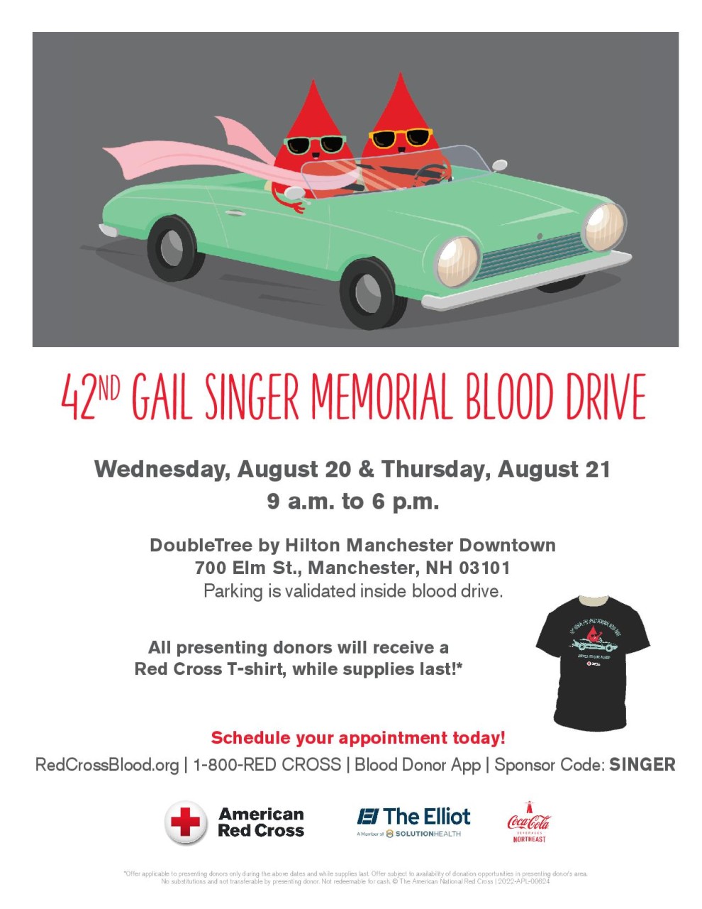 Schedule your appointment today! RedCrossBlood.org Sponsor Code: SINGER