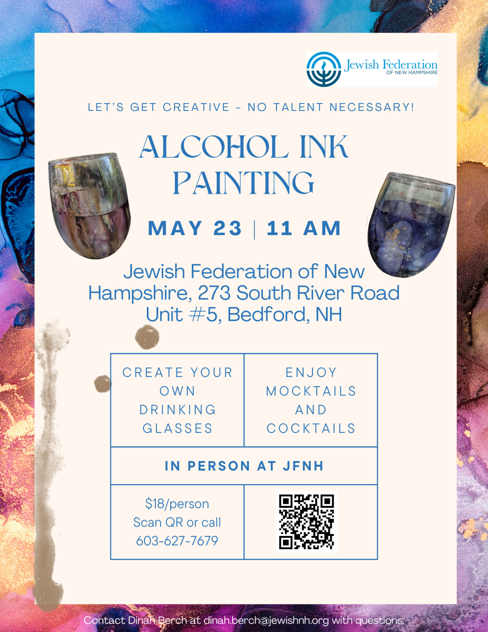 Jewish Federation of New Hampshire invites you to come create your own unique drinking glasses using Alcohol Inks!