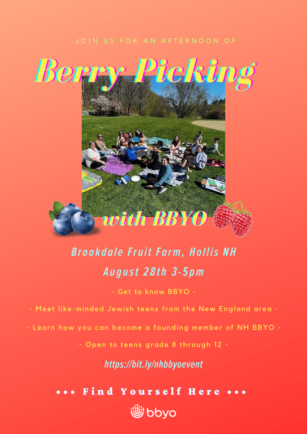 Meet like-minded teens while picking delicious berries, and learn more about BBYO New England, and how you might be helpful in starting a NH chapter!