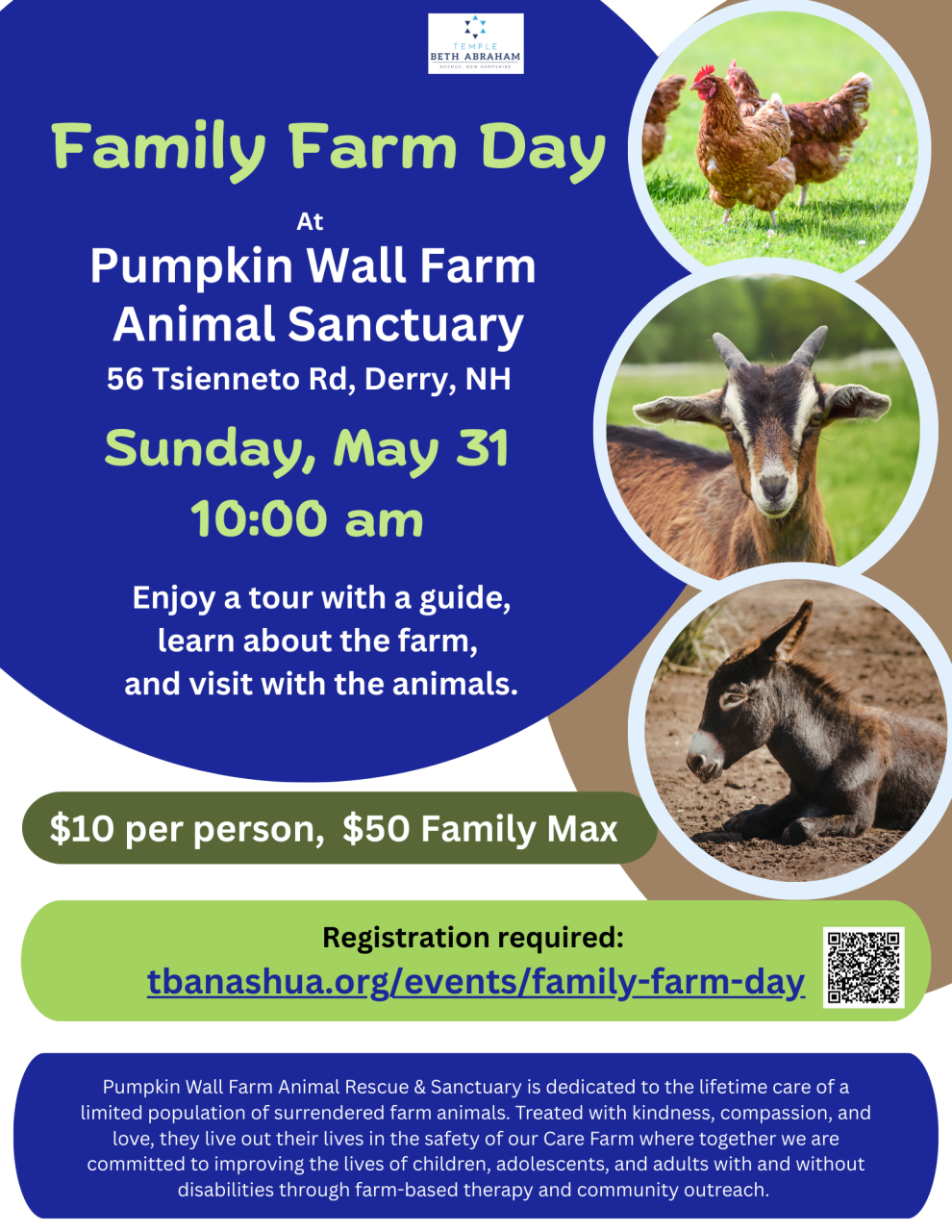 We will meet at Pumpkin Wall Farm Animal Sanctuary, enjoy a tour with a guide, learn about the farm, and visit with the animals. Register via link.