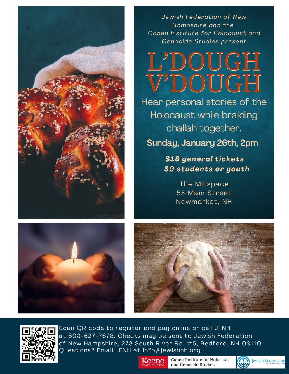 Jewish Federation of New Hampshire and the Cohen Institute for Holocaust and Genocide Studies present L'Dough v'Dough - a community storytelling and bread making event.