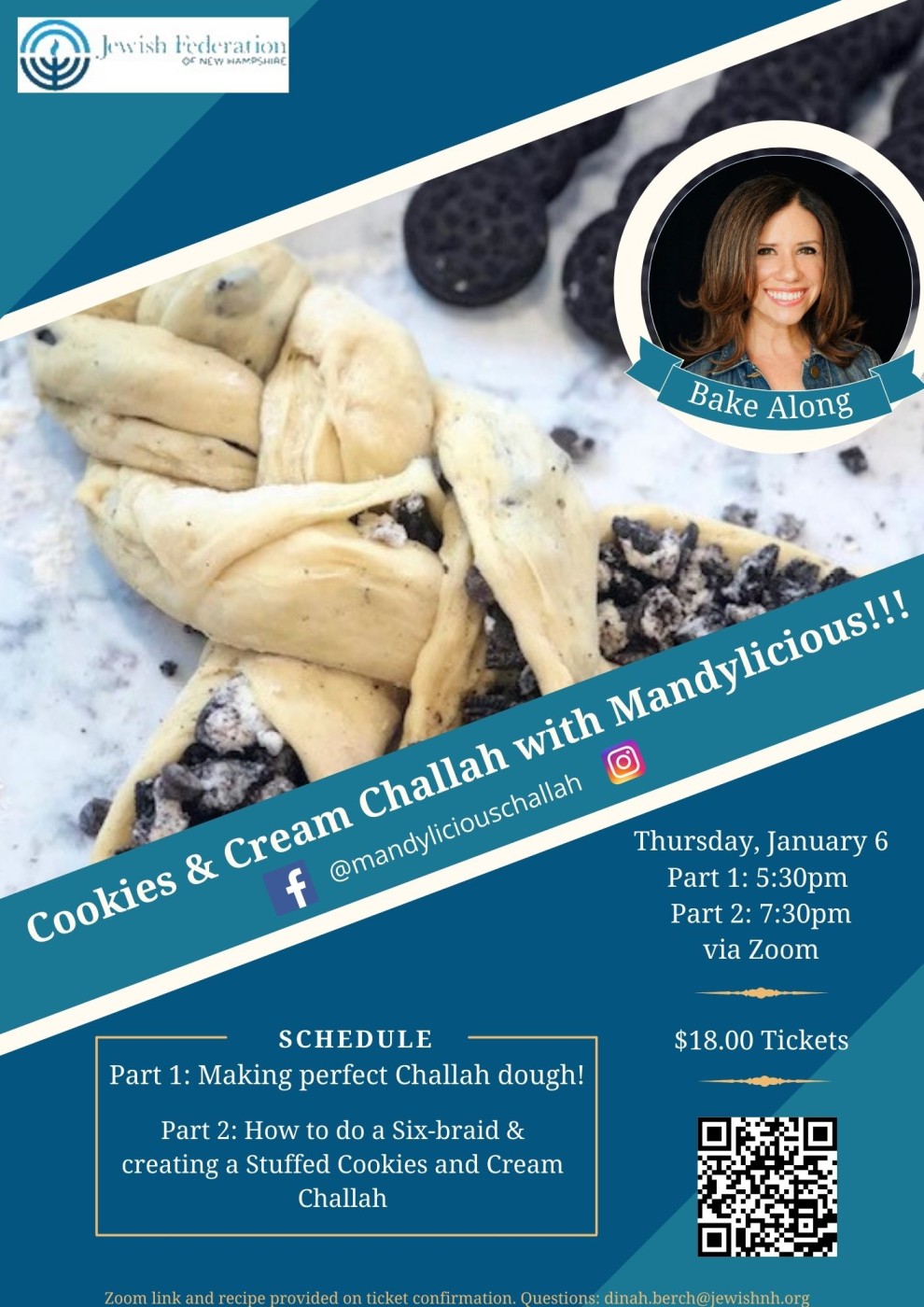 Mandy will be offering a 2-part Challah baking demonstration on January 6th. Join us at 5:30pm over Zoom to bake dough together, discuss the right types of flour and yeast, learn the right consistency for dough, and ask Mandy any challah questions you may have. Recipe will be provided but feel free to use your own favorite challah dough if you prefer.