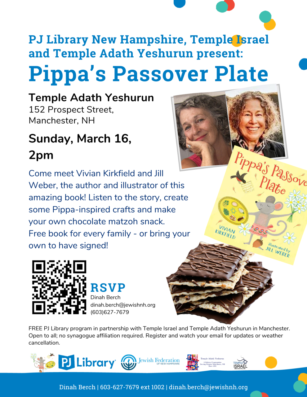 FREE PJ Library program in partnership with Temple Adath Yeshurun and Temple Israel in Manchester.