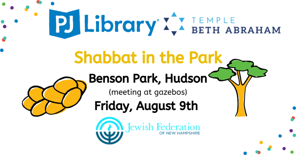 PJ Library is teaming up with Temple Beth Abraham for a Shabbat evening in the park! Enjoy a kid-friendly, interactive service with Rabbi Jon and outdoor fun and games. Bring a blanket, picnic dinner for your family and a dessert to share with the group.