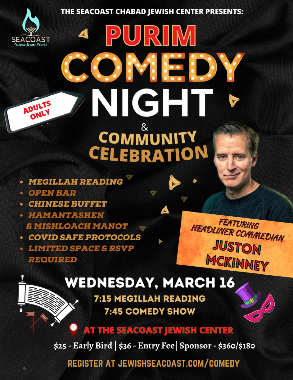 Join us for a Purim Comedy Night featuring the famous Juston McKinney !