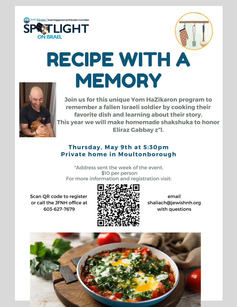 This year we will be making homemade shakshuka to honor Eliraz Gabbay z"l