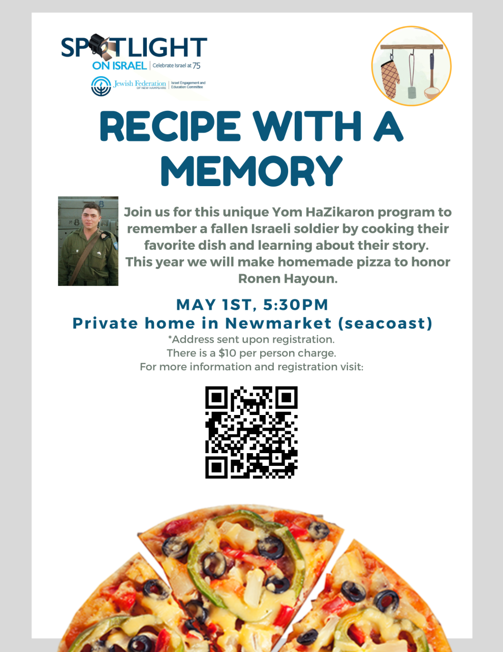 Join us for this unique Yom HaZikaron program to remember a fallen Israeli soldier by cooking their favorite dish and learning about their story.