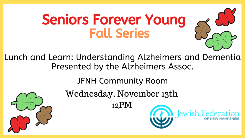 Join Seniors Forever Young at the new JFNH Community Room for Lunch and Learn presented by the Alzheimers Assoc.
