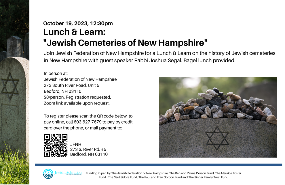 "Jewish Cemeteries of New Hampshire" presentation by Rabbi Joshua Segal