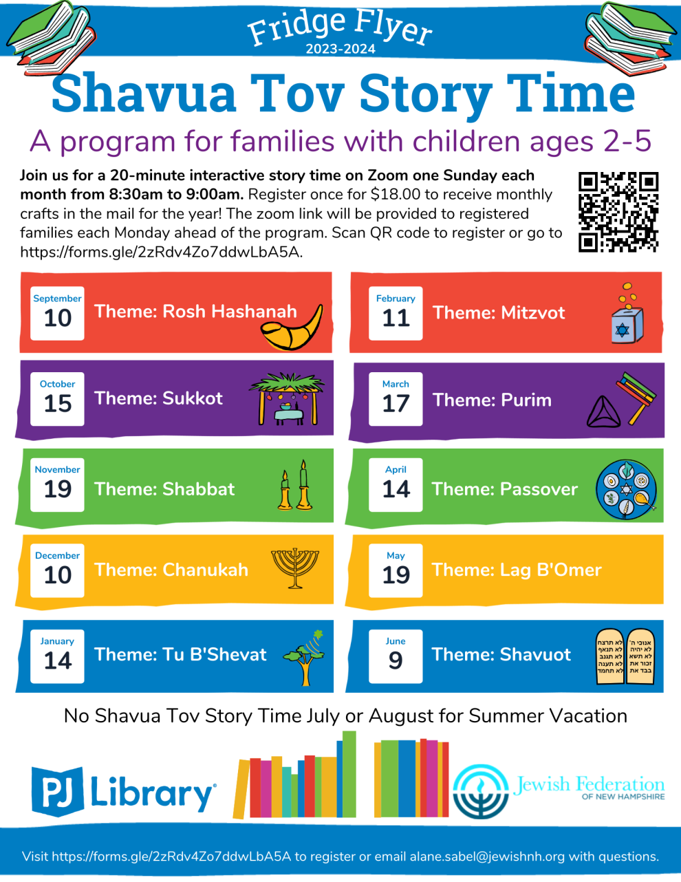 Join us for a 20-minute interactive story time on Zoom one Sunday each month from 8:30am to 9:00am.