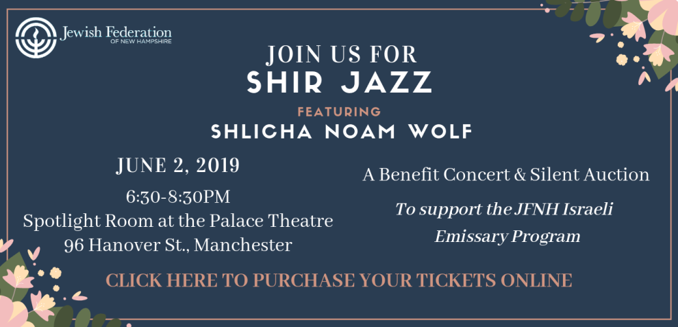 Enjoy light Israeli/Mediterranean fare provided by Pressed Café, and bid on a variety of silent auction items and experiences. Silent Auction items include Red Sox tickets, a private scenic flight for 2, custom High Holiday centerpiece, and much more!