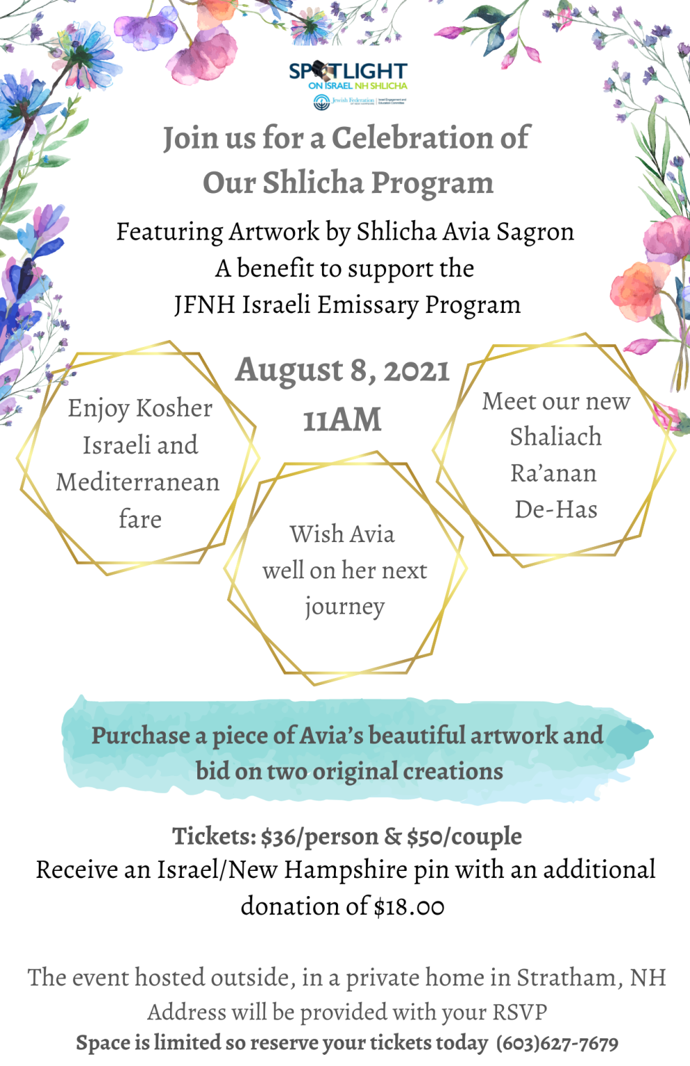 Featuring artwork by New Hampshire Shlicha Avia Sagron.