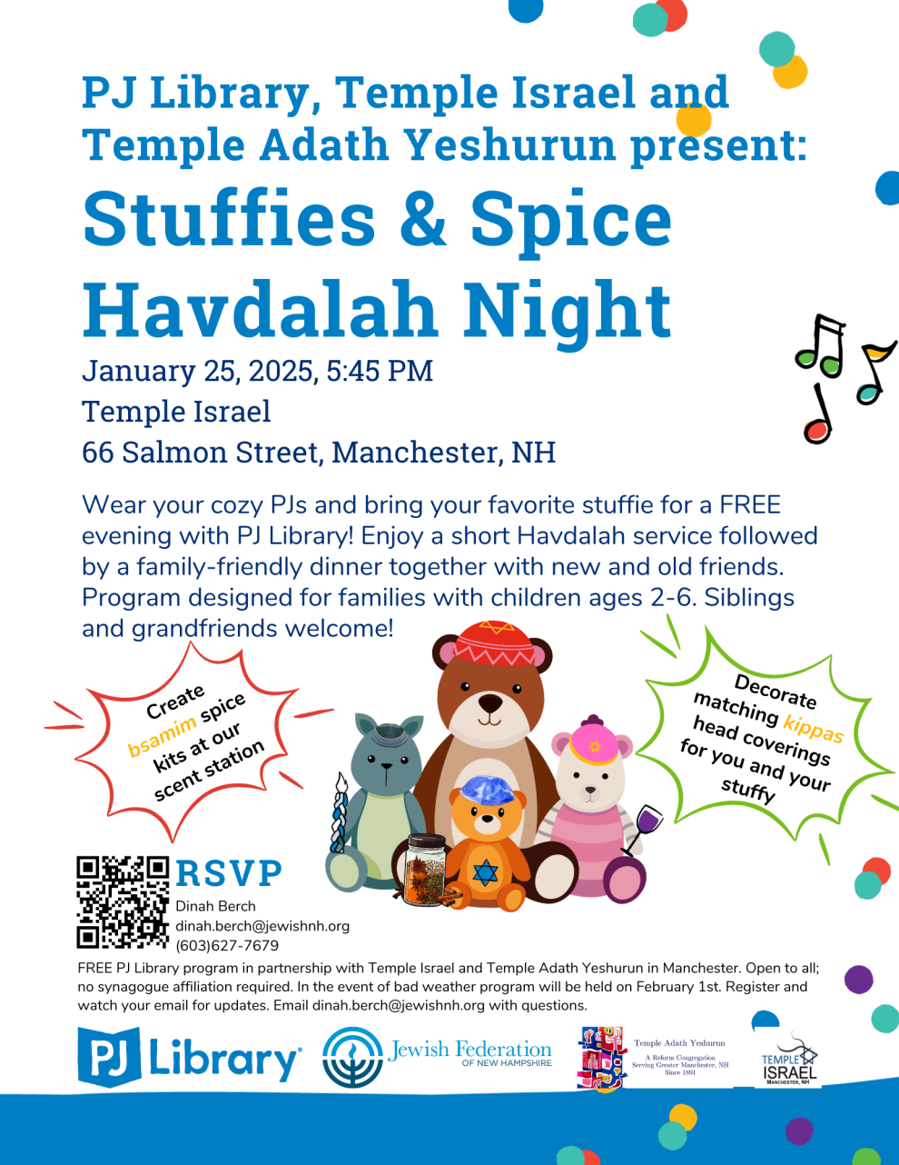 FREE PJ Library program in partnership with Temple Adath Yeshurun and Temple Israel in Manchester.