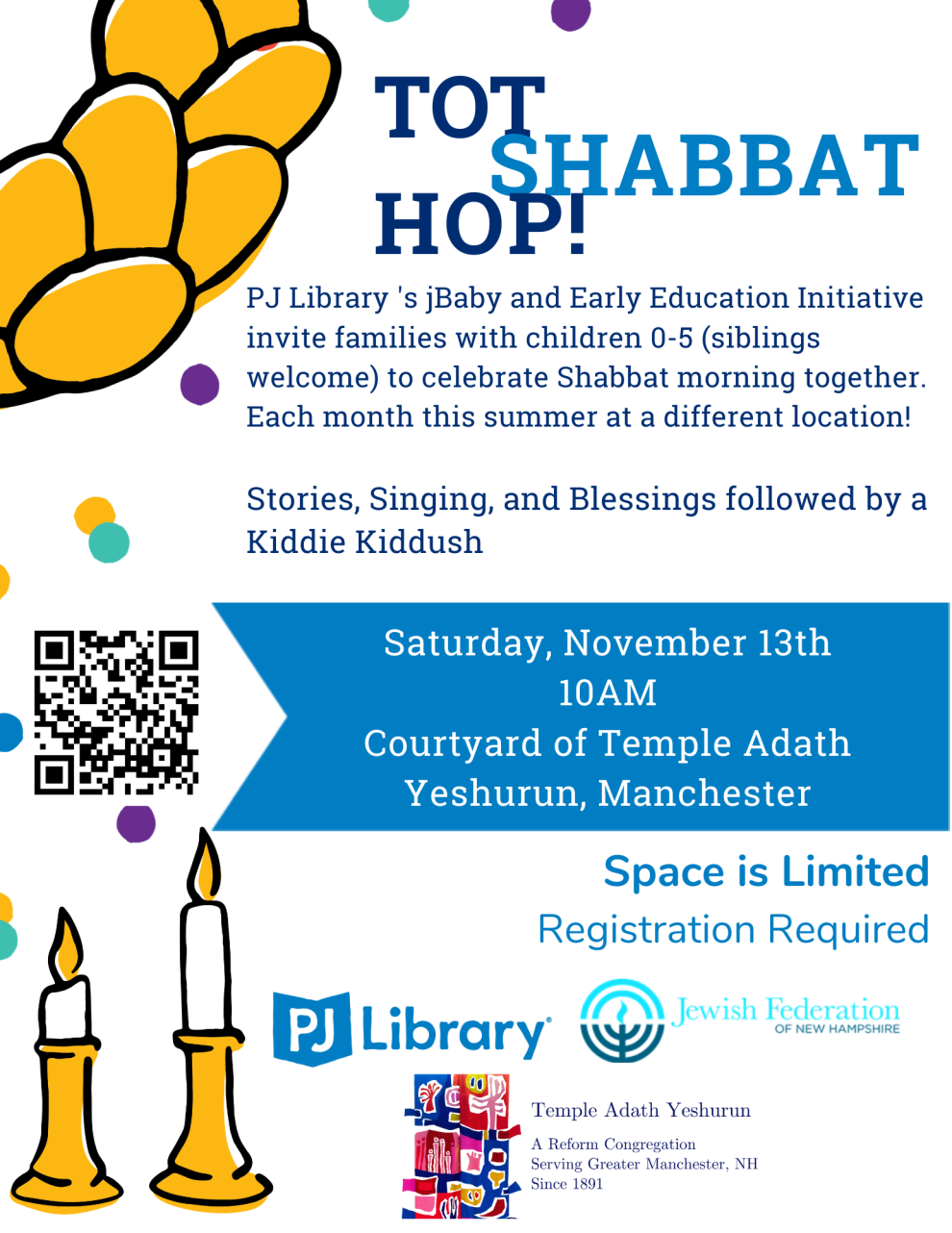 PJ Library 's jBaby and Early Education Initiative invite families with children 0-5 (siblings welcome) to celebrate Shabbat morning together.