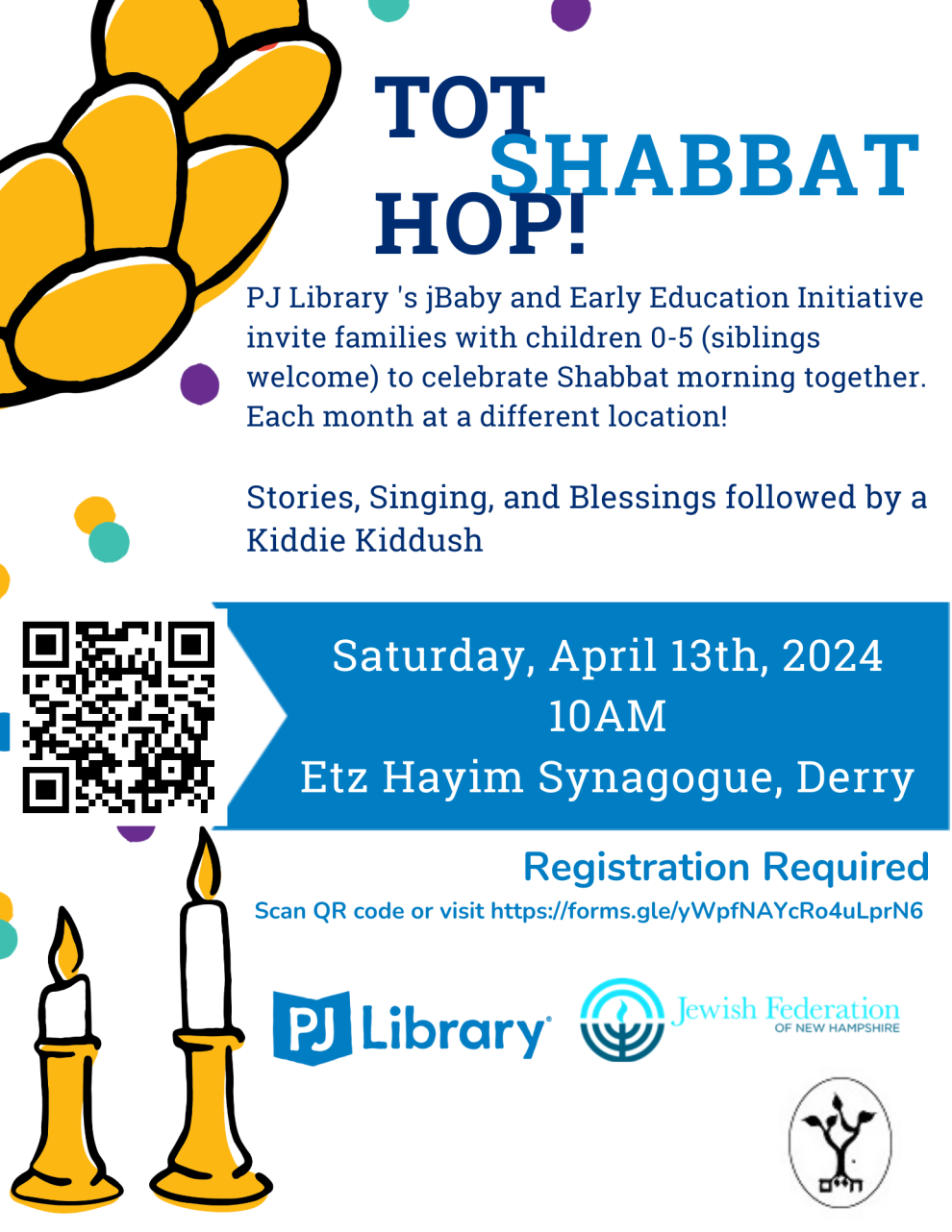 PJ Library's jBaby and Early Education Initiative invite families with children 0-5 (siblings welcome) to celebrate Shabbat morning together.