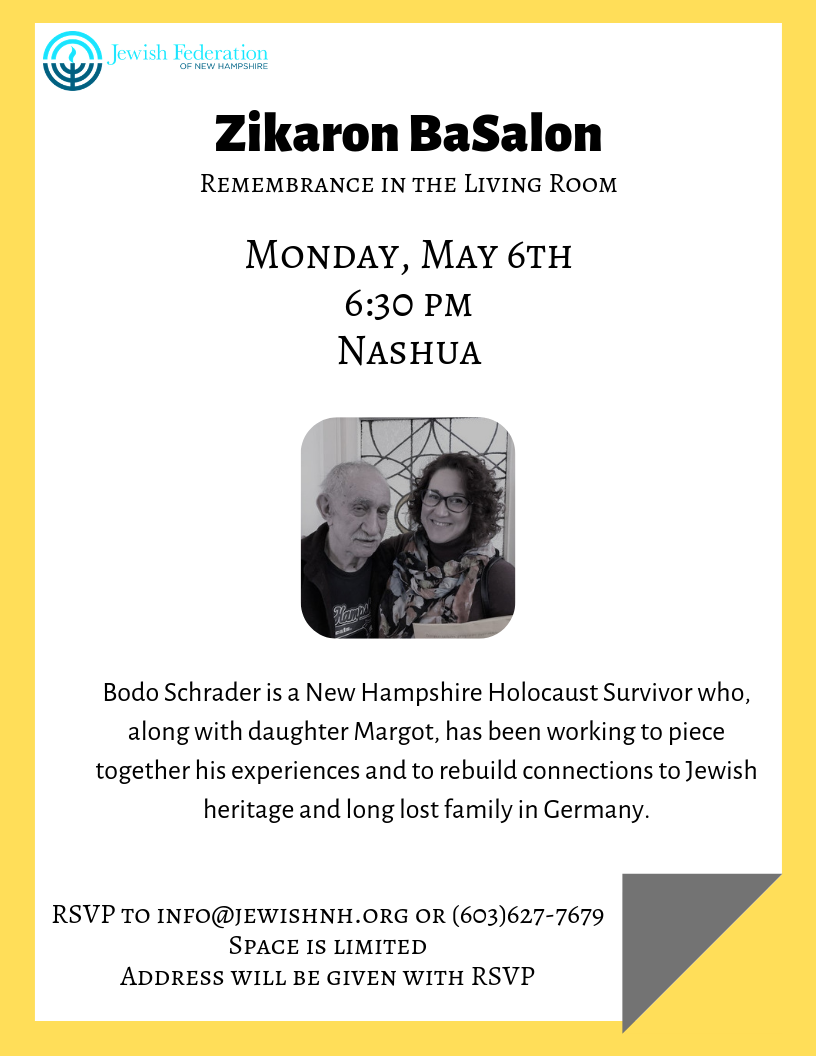 Bodo Schrader is a New Hampshire Holocaust Survivor who, along with daughter Margot, has been working to piece together his experiences and to rebuild connections to Jewish heritage and long lost family in Germany.